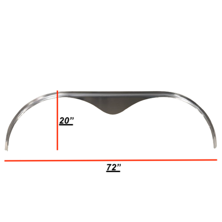 Measuring 72" wide x 20" tall x 1" deep, this fender fits over standard trailer tires and features a rounded design for a classic, aerodynamic finish with